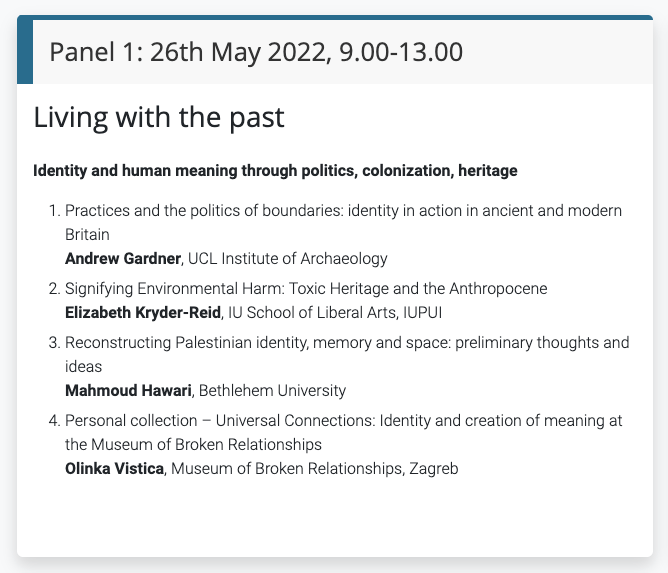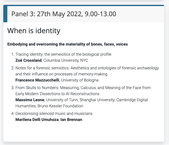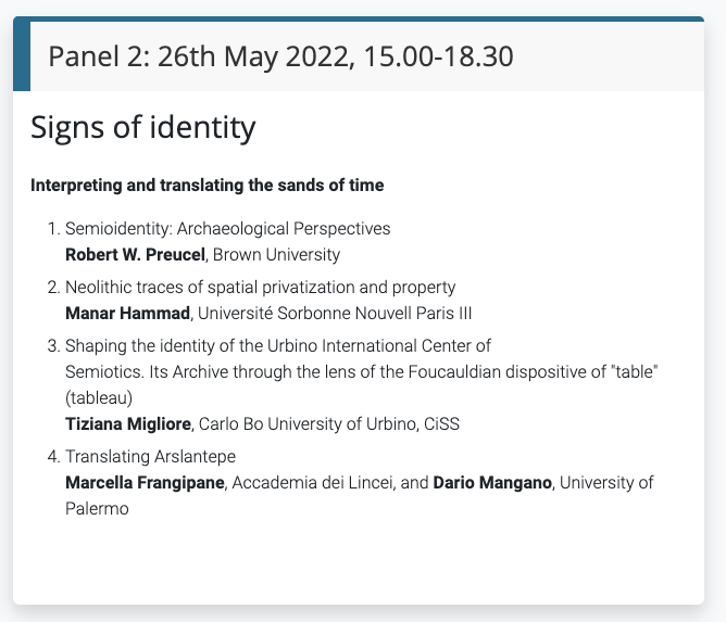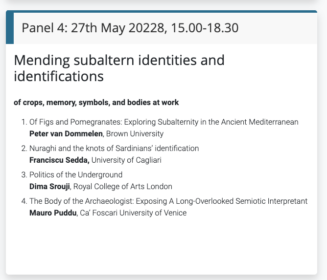 This symposium was held in Venice in May 2022, where archaeologists, semioticians, museum curators, human rights activists, artists, and architects met to discuss the methods through which archaeology envisages data as signs of ancient identities. Ultimately, we discussed how we live today with the arising meanings of multiple pasts.