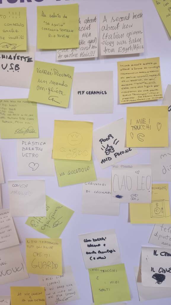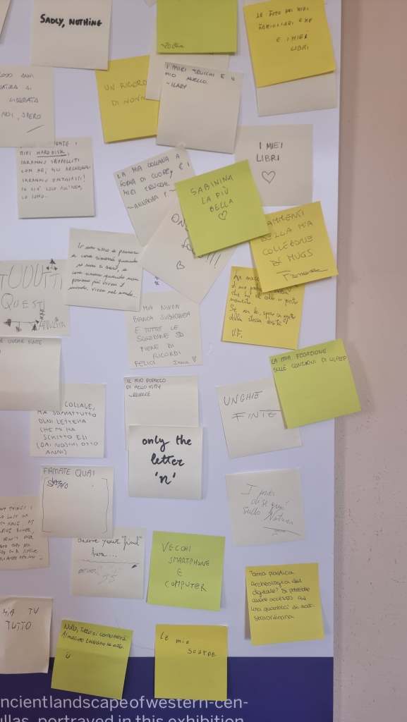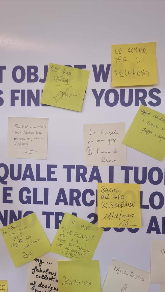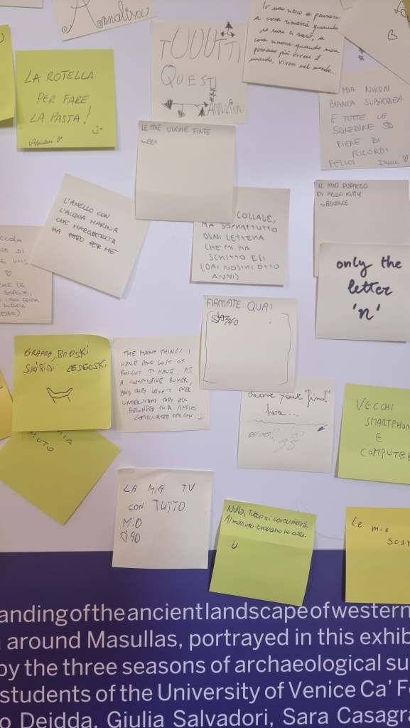 As part of both exhibitions Shards of the Past, Meaning of the Present opened in August 2023 in Venice, and Sardinnia e Mundu: Memoria, Corus, Passau e Presenti, ongoing in Masullas, we installed a special wall. A white pristine wall ready to welcome the visitors’ answer to a simple, yet challenging question: 2000 years from now, what would you like future archaeologists to find that defines you? What started as an empty wall…