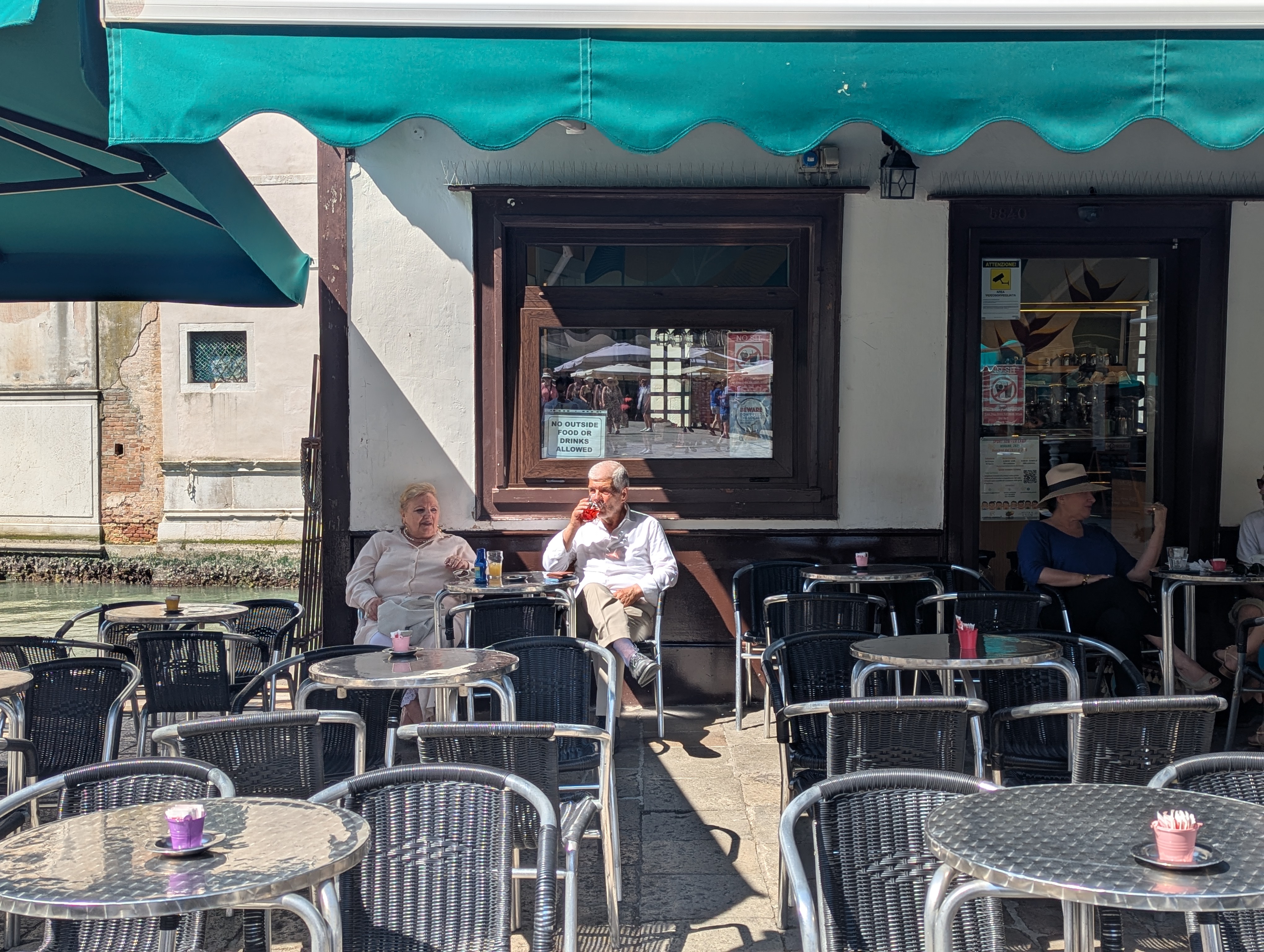 Venice is an old couple sitting every day in the same spot — the lady always in the shade, her husband always in the sun.